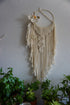 Hay flores que crecen en los lugares más insospechados. En este caso, al lado de este aro dorado con su collar de macramé en color natural. Bonita fusión.
