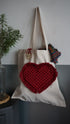 Bolsa de tela con macramé en algodón 100% ecológico, suave y sostenible. Cómoda y ligera, ideal para el uso diario. Con cremallera y bolsillo interior.