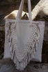 Bolsa de tela con macramé en  algodón 100 % ecológico,  suave y sostenible. Cómoda  y ligera , ideal  para el uso diario.